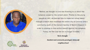 A striking testimonial comes from Boris AMAGLO, a resident and community paralegal from the Xwlacodji neighbourhood: