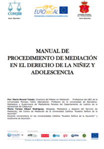 El presente manual es el texto del procedimiento de mediación en el derecho de la niñez y la adolescencia. Se refieren los aspectos jurídicos, psicológicos y metodológicos de dicho procedimiento, cuando el objeto de controversia entre partes confrontadas en un conflicto que implica directamente a los derechos de un niño o a un adolescente. La mediación en este caso tiene unas particularidades que se deben tener en cuenta en los tres aspectos mencionados (jurídicos, psicológicos y metodológicos) y que representan la singularidad de este documento.